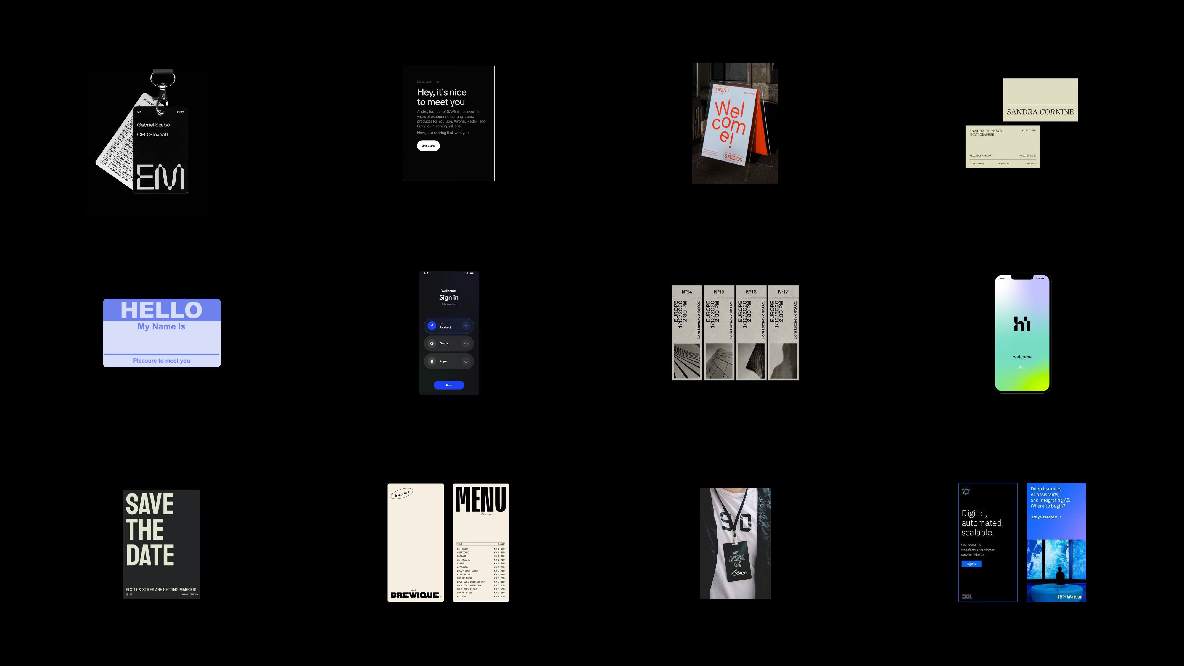 First, I gathered images that communicate an introduction: a name tag, a business card, a splash screen, an invitation card; then I created a mood board to share with my team. This stimulated a discussion about the information we wanted to include on the home screen. We wanted the amount of information to be minimal yet bold. We focused on three main elements: the name of the assistant, a short welcome message, and quick-start links that would help kick off the conversation.
