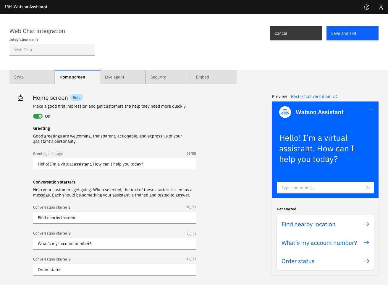 Currently, the Watson Assistant team is working on additional features for home screen, expanding on ideas from our brainstorm session.