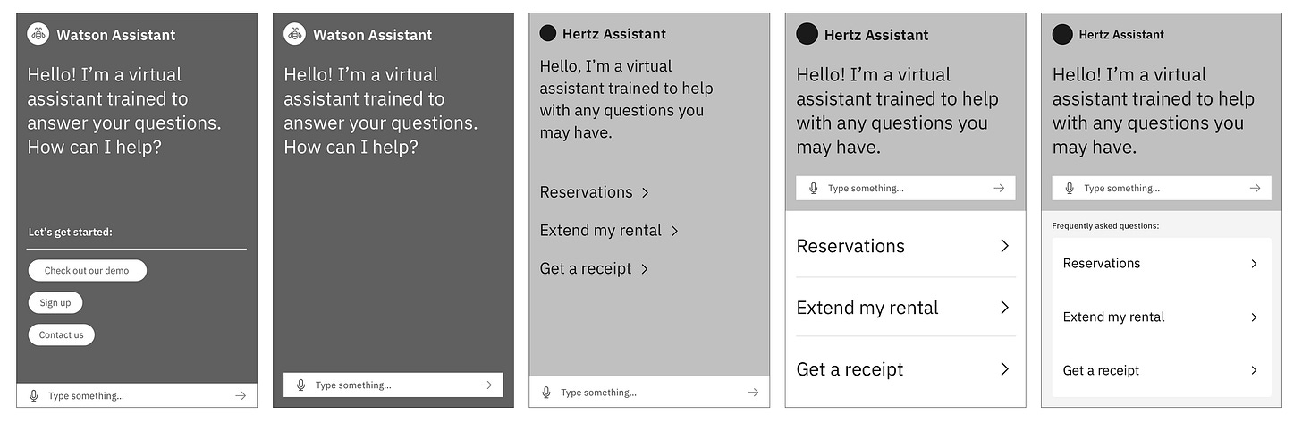 Watson Assistant provides users with tooling to build and customize an assistant. For the welcome message and quick- start links, we wanted to give users a way to personalize their content. This meant evaluating all use cases and designing versions that would accommodate multiple scenarios.